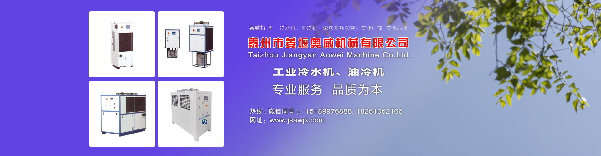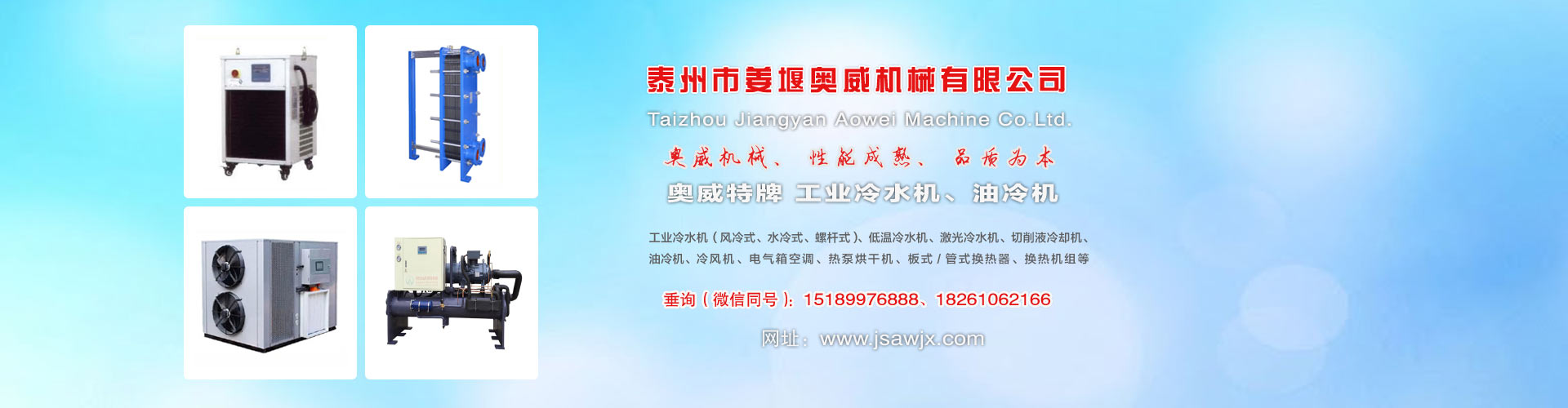 江蘇省,泰州市姜堰奧威機械有限公司,我公司是工業(yè)制冷設(shè)備,工業(yè)冷水機,油冷機,冷水機生產(chǎn)廠家(15189976888),公司集研發(fā)、設(shè)計、制造、銷售于一體。擁有20多年冷水機,油冷機,風(fēng)冷式冷水機,水冷式冷水機,低溫冷水機,工業(yè)冷水機組,豐富生產(chǎn)經(jīng)驗,產(chǎn)品以成熟的品質(zhì),穩(wěn)定的性能,獲得到了廣大用的贊譽。